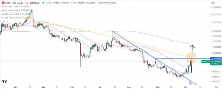 AVAX was last changing hands close to $10.70 per token, having broken convincingly to the north of both its 21 and 50-Day Moving Averages this week.