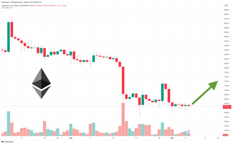 The Ethereum price has risen slightly to $1,629 today, representing a 0.5% increase in the past 24 hours and a 5% loss in the last seven days.