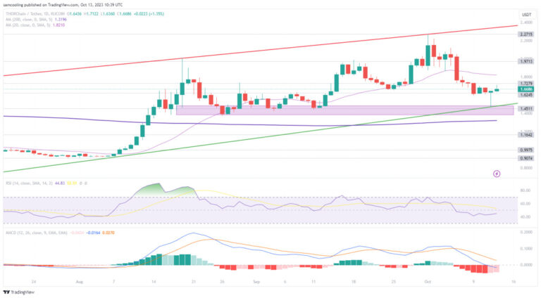 Following a dramatic trading pause on ThorSwap, native token Thorchain ($RUNE) has exploded +12%, this comes amid heightened efforts across the crypto industry to tighten security around illicit funds following the break-out of major violence between Hamas and Israel.