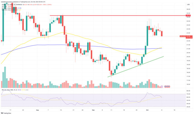 The Solana price has dropped to $22.81 today, representing a 2.5% fall in the past 24 hours as the wider market slips by 0.5% in the same amount of time.