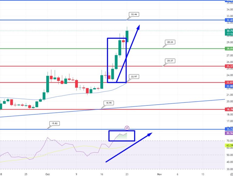 On a 4-hour chart timeframe, certain critical price levels are noteworthy. The pivot point for Solana is delineated at $28.24. As we trace the upward trajectory, an immediate resistance lies at $32.46, succeeded by subsequent resistance levels at $35.62 and $38.87.