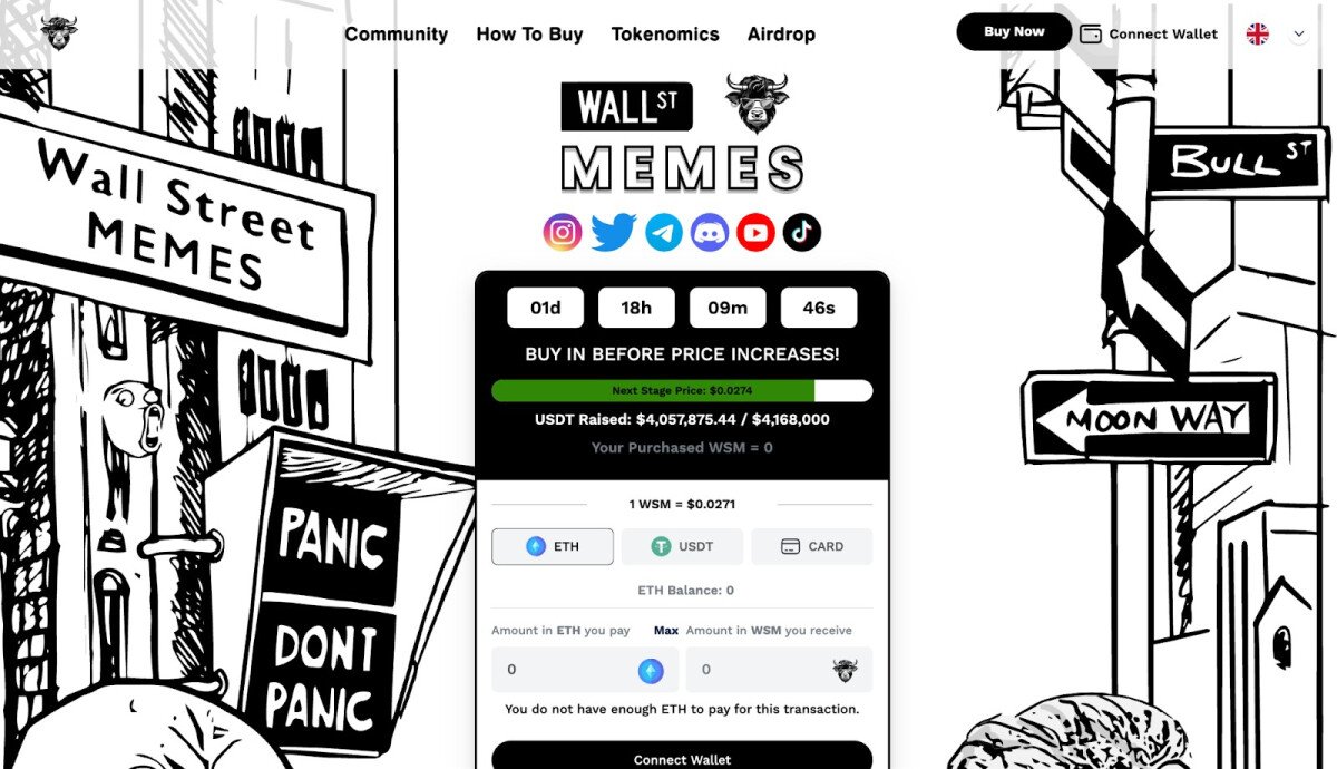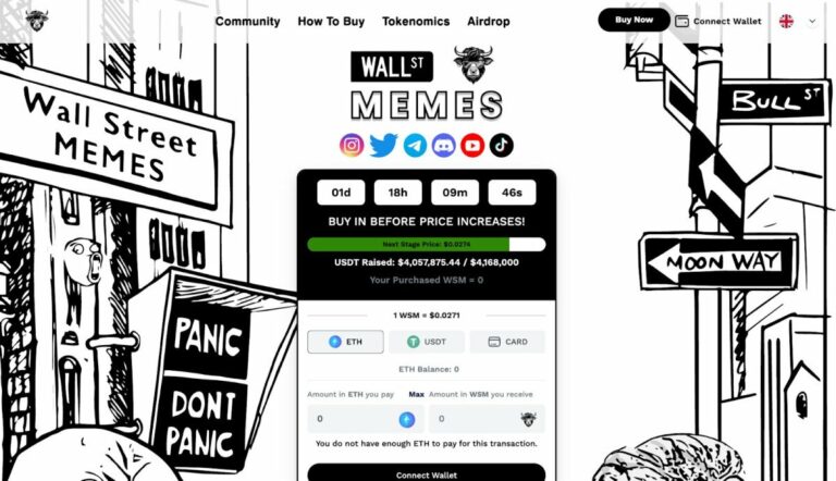Monday June 5th 2023 – Hotly anticipated meme coin Wall Street Memes ($WSM) has raised $4m from buyers in the space of just 10 days. As of the time of writing $4,057,875 has been raised in the ongoing presale.