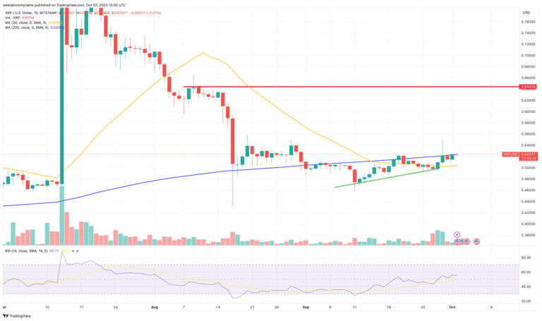 XRP is now up by 6% in a week and nearly 6% in the last 30 days, with the altcoin also having appreciated by 54% since the beginning of 2023, a year which saw Ripple gain a largely positive result in its case against the SEC in mid-July.