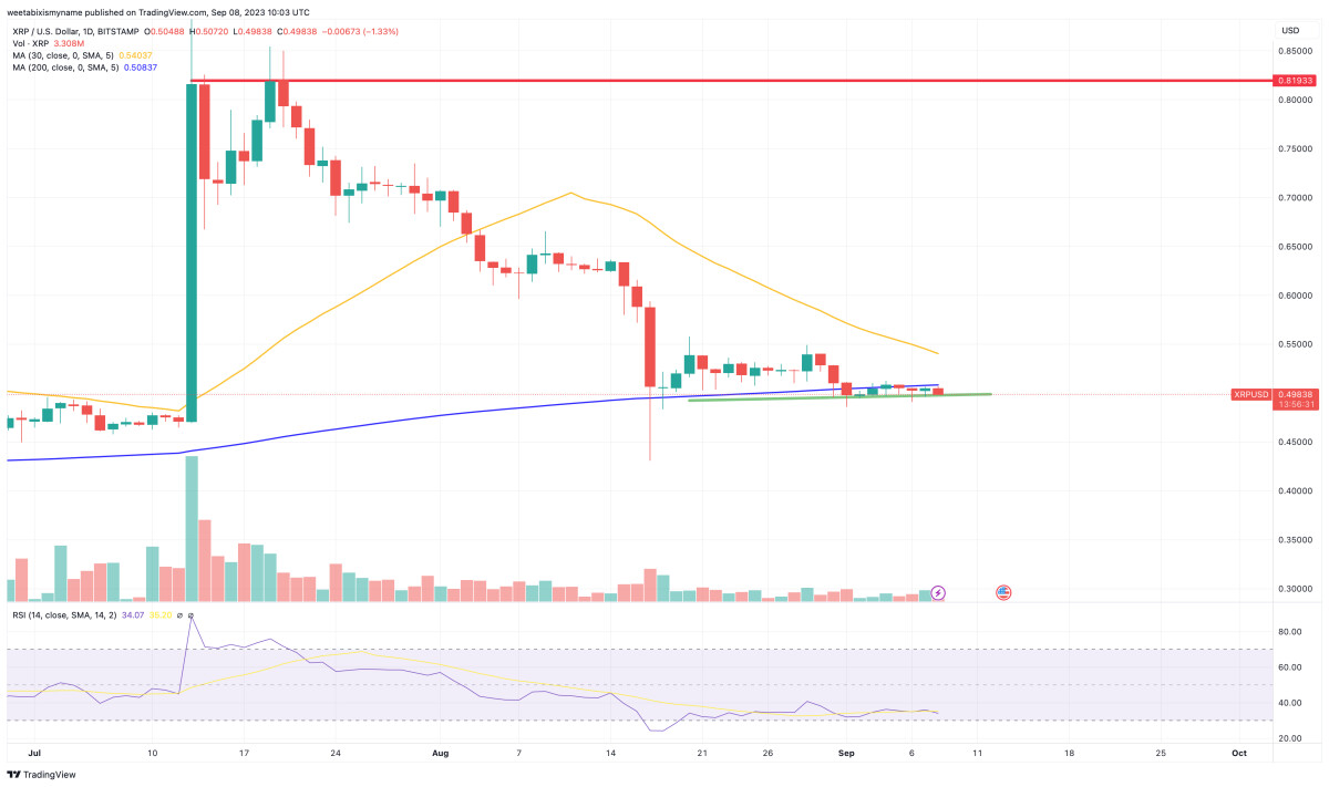 The XRP price has risen by 0.5% in the past 24 hours, returning to the $0.501675 level on a day when the cryptocurrency market as a whole posts a 1% gain.