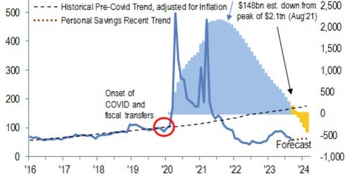 Our Chart of the Day is from JPMorgan, which highlights that consumers have significantly spent down their excess savings from the COVID-19 pandemic.