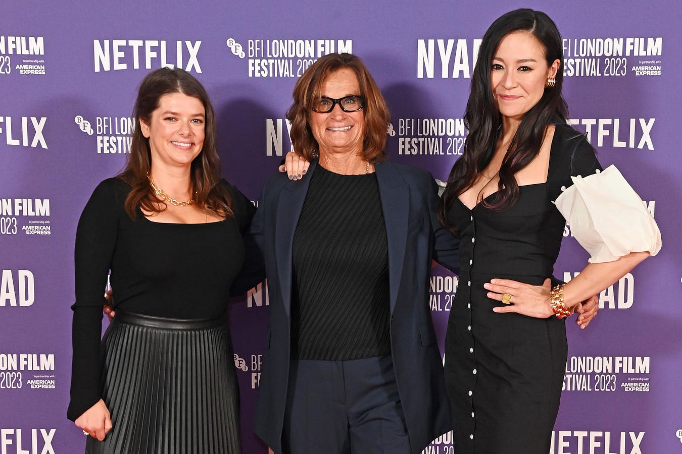 LONDON, ENGLAND – OCTOBER 10: (L to R) Julia Cox, Bonnie Stoll and Elizabeth Chai Vasarhelyi attend … [+]