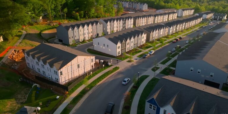 “Why aren’t we talking about the most terrifying part of Love is Blind: this Charlotte housing development,” one viewer posted on X alongside an aerial image of the newly-built cookie-cutter rowhouses.