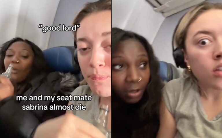 Smith recorded them both sipping Jack Daniel's whiskey as the flight shuddered. She told Insider the "shot of liquid courage" helped calm their nerves.