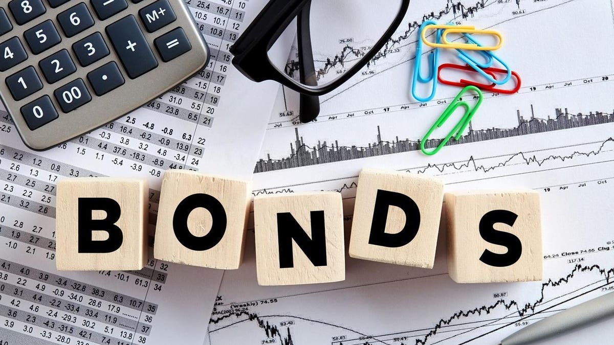 The word bonds on wooden cubes with office desktop. Business finance stock exchange concept.