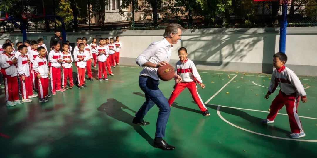 - California Gov. Gavin Newsom plowed into a student while playing basketball in China.