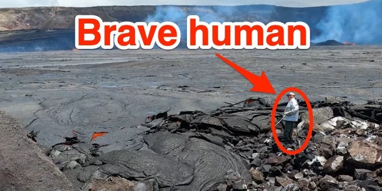 They walk within inches of this pile of freshly-cooled lava to collect their samples. No big deal when it’s all in the name of science: