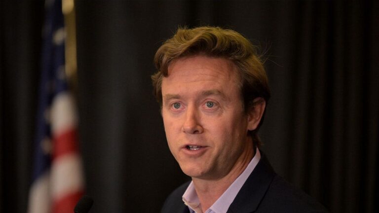 Former state Sen. Mike Johnston speaks in Denver, Colorado, on May 11, 2023. Residents of Denver have elected former state Sen. Mike Johnston as the city’s first new mayor in more than a decade. (Hyoung Chang/The Denver Post)