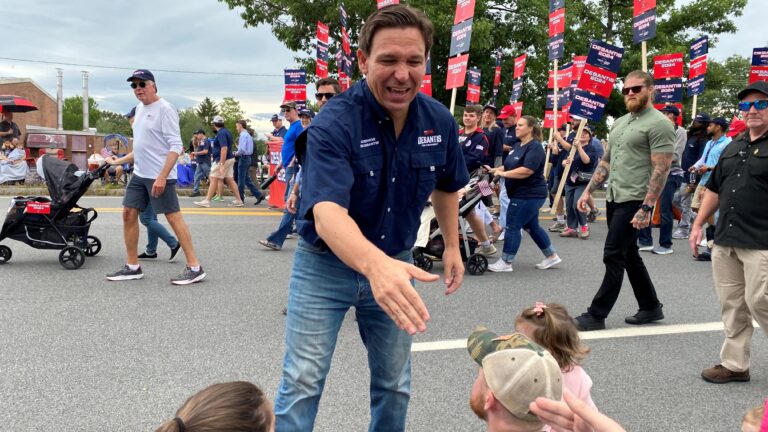 On Saturday, DeSantis started his jam-packed day by marching in Londonderry, New Hampshire’s annual Old Home Day Parade, and shaking plenty of hands along the nearly one-mile route.