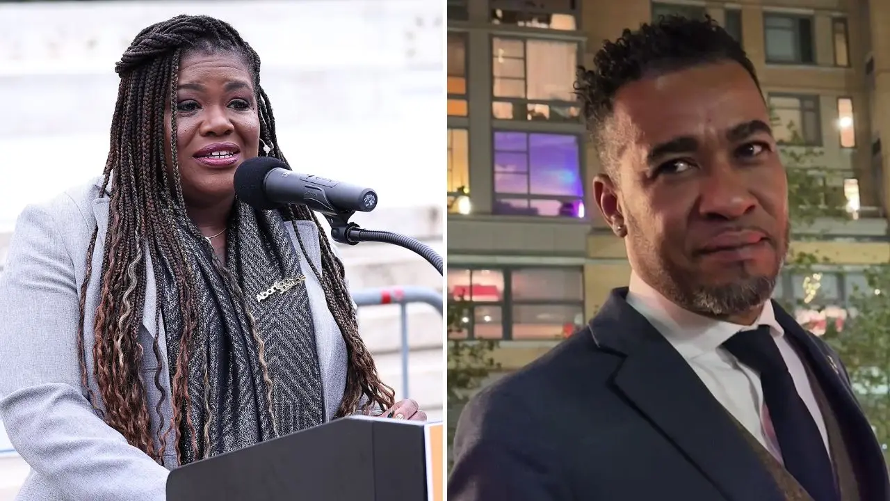 Rep. Cori Bush, left, has paid her husband, Cortney Merritts, right, thousands of dollars from her campaign for ‘security’ and ‘wage expenses.’ (Getty Images)