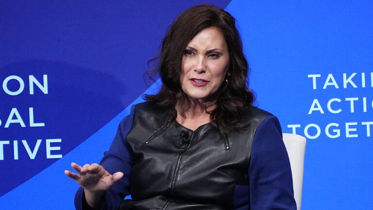 Michigan Gov. Gretchen Whitmer speaks during the Clinton Global Initiative meeting at the Hilton Midtown in New York City on Sept. 19. Her sister suspended her campaign in New York’s 17th congressional district Wednesday. (John Nacion/WireImage)